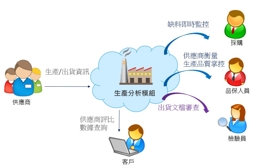 Production management involves planned, organized, directed, and supervised activities. To achieve high-efficiency output goals with minimal resource waste, the company must monitor production yield rates at manufacturing sites, analyze and supervise production data stability and performance, quickly grasp quality production targets, and further monitor critical process factors through statistical analysis to predict trends and identify issues early.
