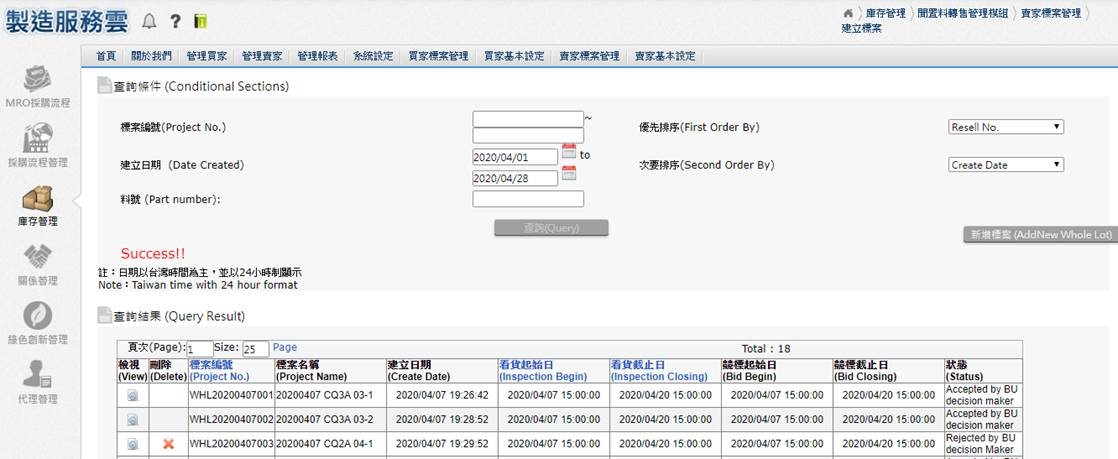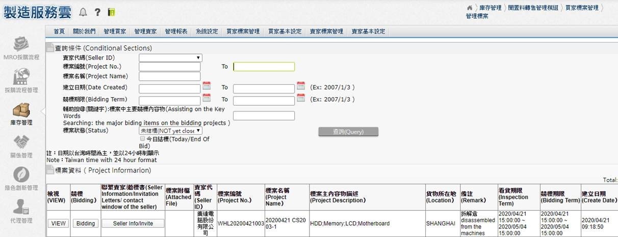 Idle Material Resale Management
