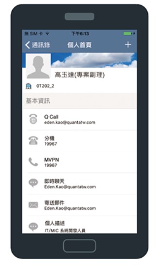 • Provides company, personal, and partner address books to quickly contact colleagues and business partners through keyword search.